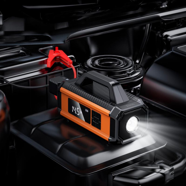 - Бустер-насос для авто Hoco Intelligent air pump with emergency start-up power bank QS4 10000mAh |360A/800A, 1.8-3.8 bar|