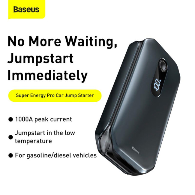 - Пусковий пристрій для авто BASEUS Super Energy Pro Car Jump Starter 12000mah |5V/3A, Peak current1000A| (CRJS03-09)