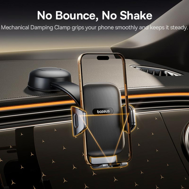 BASEUS PrimeTrip C03 Air Clamping Car Mount (Suction Cup Version) - це автомобільний тримач із вакуумною присоскою та механічним затискачем, який забезпечує максимально стабільне утримання смартфона під час руху. Завдяки продуманій конструкції, міцним матеріалам і гнучкій алюмінієвій руці, аксесуар гарантує комфортне використання навігації та безпечний доступ до екрана в будь-яких умовах.