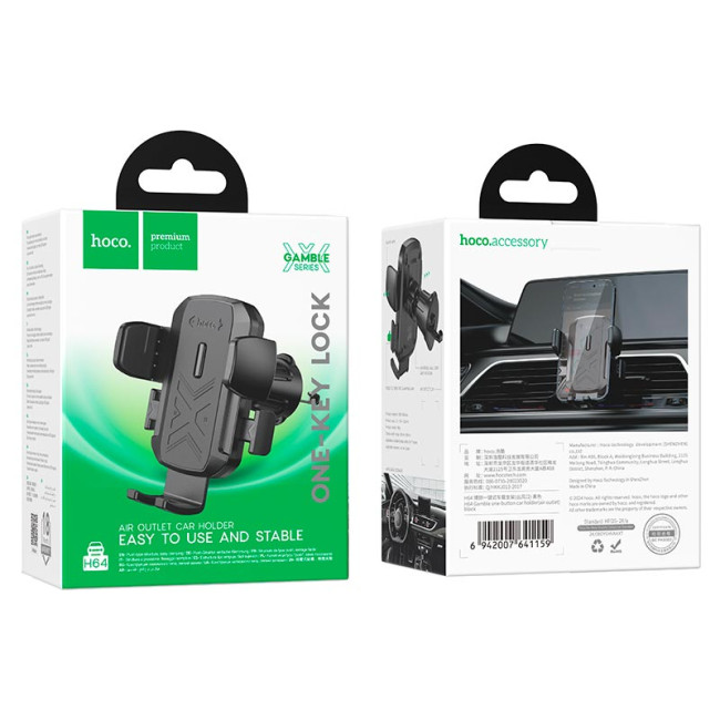 Тримач Hoco Gamble one-button Car holder H64 (air outlet) |4.5-7"|