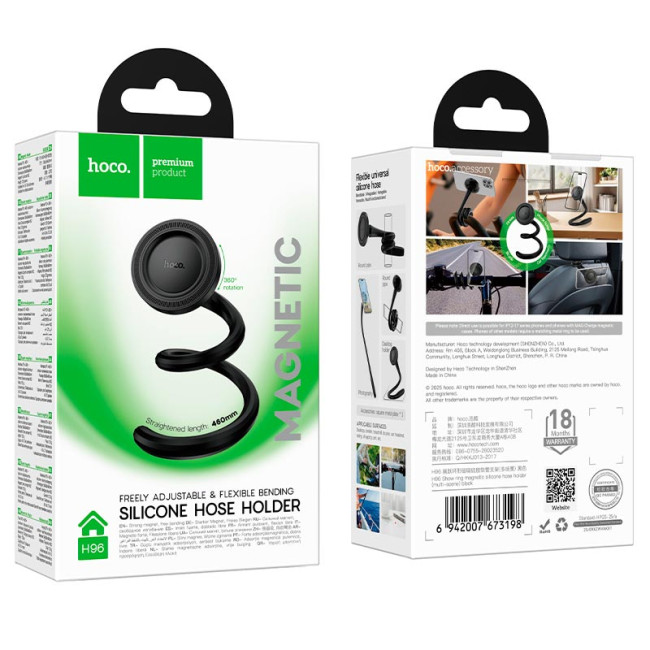 Універсальний магнітний тримач HOCO H96 з гнучкою силіконовою основою дозволяє зручно закріпити смартфон у різних місцях — вдома, в автомобілі або під час занять спортом. Гнучкий тримач легко згинається та фіксується на різних поверхнях, що робить аксесуар практичним для багатьох сценаріїв використання.