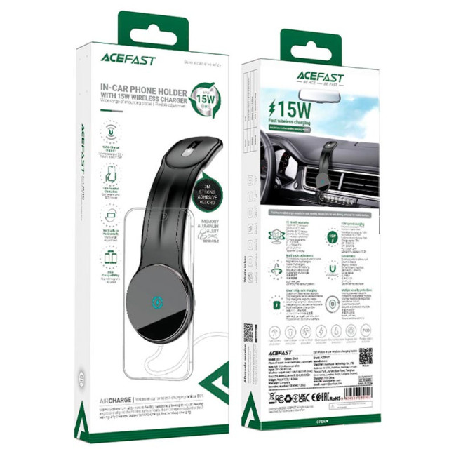 Утримувач ACEFAST D21 Velcro in-car wireless charging holder - бездротова зарядка та надійне кріплення для авто