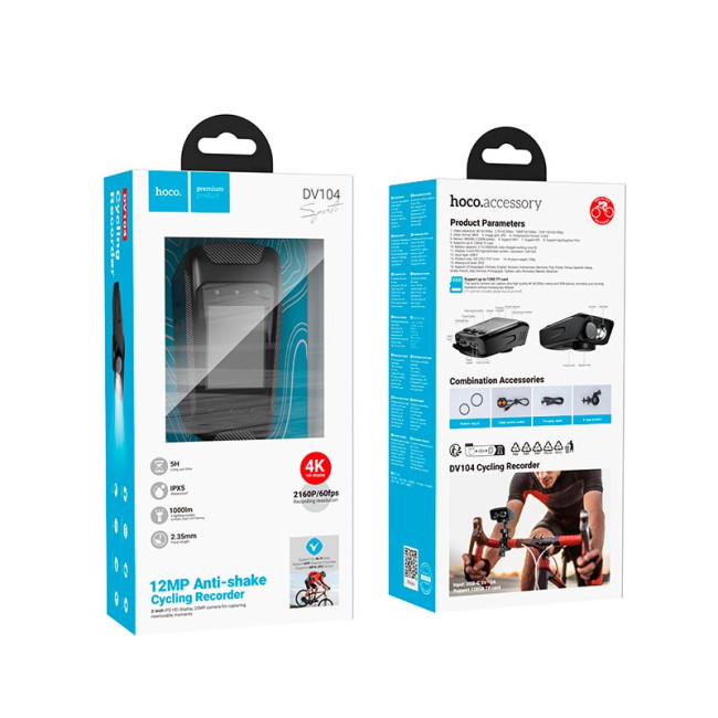 - Екшн камера для велосипеда HOCO DV104 4k Anti-shake Riding recorder |2160p/60fps, 2" HD Display, 1000lmn Light, Wi-Fi, 5h|