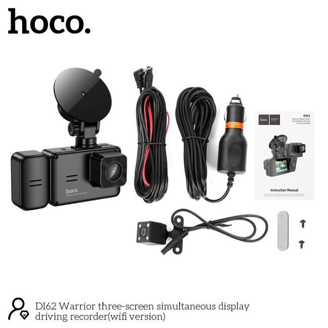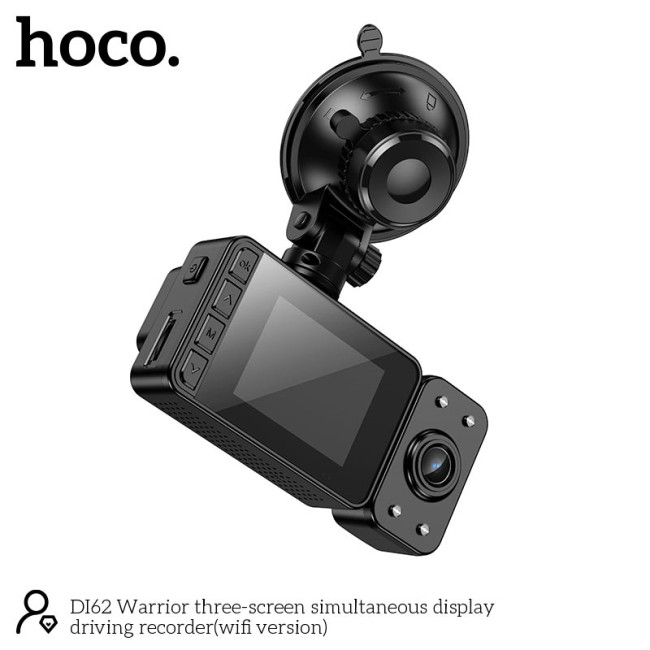 - Відеореєстратор HOCO DI62 Warrior three-screen simultaneous display driving recorder (wifi version) |720p front/480p rear/480p inner|