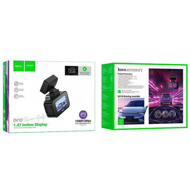 Hoco DV10 — це зручний і функціональний відеореєстратор для автомобілістів, які цінують компактність і високу якість запису.