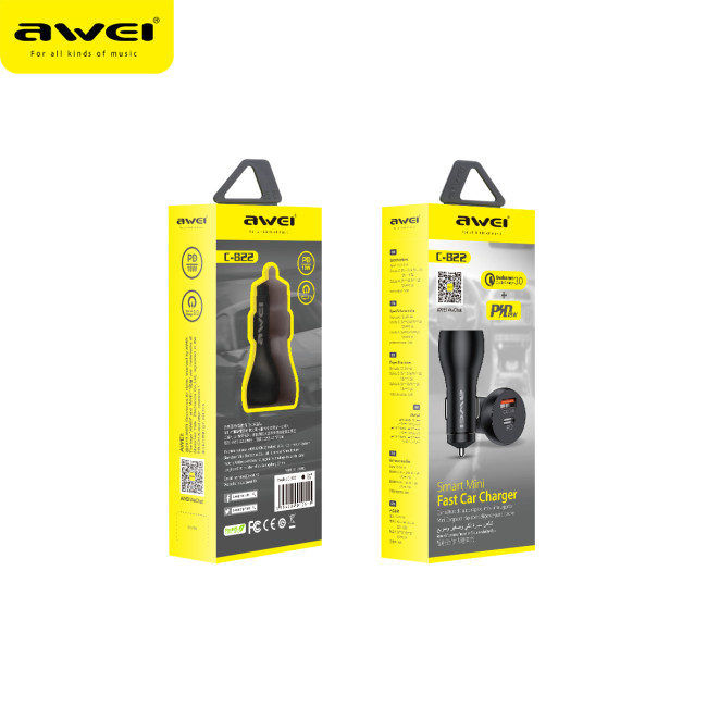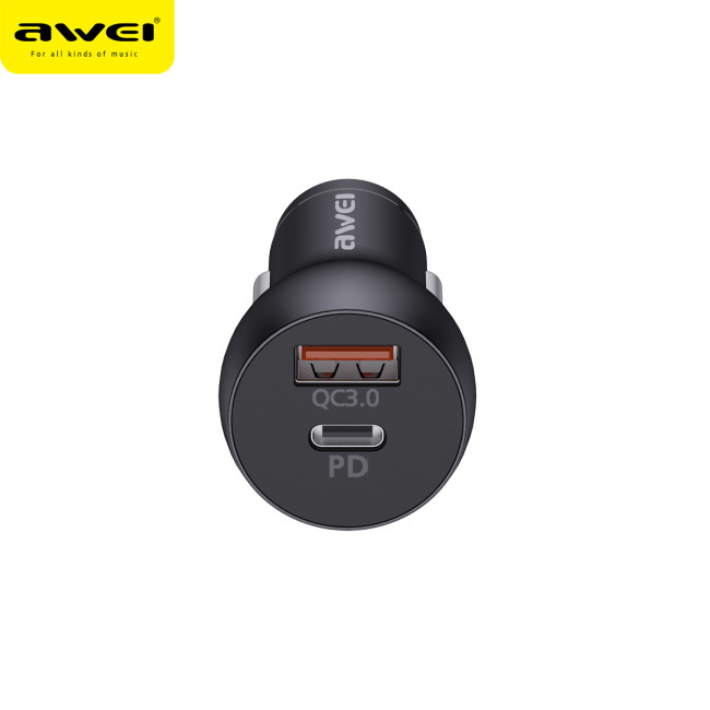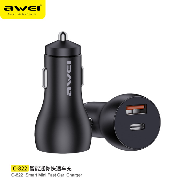 Адаптер автомобільний AWEI C-822 |1USB/1Type-C, QC/PD, 3A, 18W|