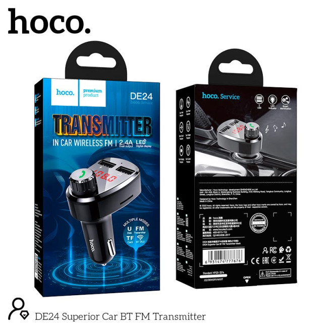 Адаптер автомобільний HOCO Superior Car BT FM Transmitter DE24 |2USB, 2.4A, TF/U Disk|