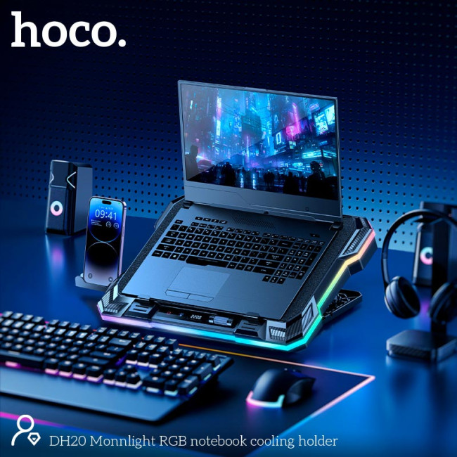 Куллер для Ноутбука Hoco Monnlight RGB notebook cooling holder DH20 |10RGB Mode, 7 level, 2USB|