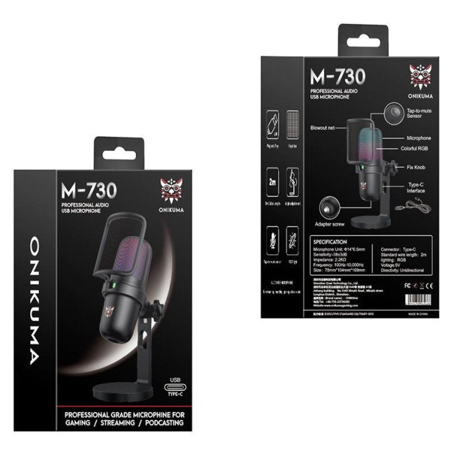Onikuma M730 — універсальний USB-мікрофон для стримінгу, подкастів, онлайн-ігор та запису голосу. Модель оснащена кардіоїдною (односпрямованою) діаграмою спрямованості, що допомагає ефективно зменшувати фонові шуми та робить голос більш чітким і природним.