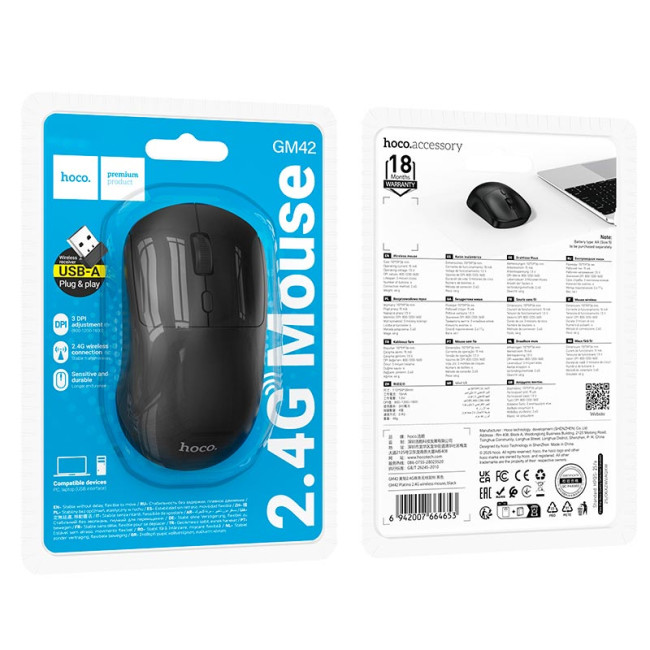 HOCO GM42 - популярна бездротова миша, підходить для дому, офісу та геймерів, забезпечує надійне та точне керування курсором.