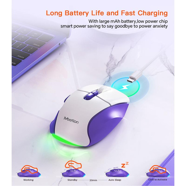 MEETION BTM001 — це бездротова ігрова миша, яка поєднує два режими підключення: 2.4G та Bluetooth, що дозволяє вам без зусиль використовувати її з різними пристроями, будь то ПК, ноутбук чи планшет. Завдяки стильному дизайну та зручним функціям, ця миша стане вашим ідеальним компаньйоном як для ігор, так і для повсякденної роботи.