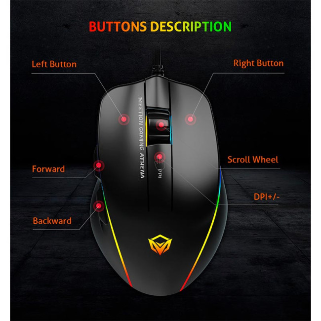 - Миша MEETION RGB Circulation Backlit Gaming Mouse GM23_2023 |7 Keys, 12800dpi|