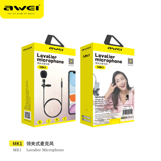 Мікрофон AWEI Lavalier Microphone MK1 |3M|