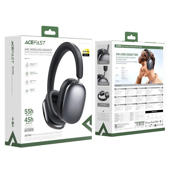 Навушники ACEFAST Active Noise Cancelling Wireless Headset H9 |BT5.4, 45/55h, ANC| - глибоке звучання та активне шумопригнічення