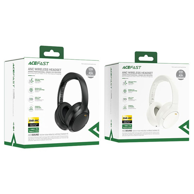 Навушники ACEFAST Active Noise Reduction Wireless Headset H6 |BT5.3/3.5mm, 45/55h, ANC| - глибоке звучання та активне шумопригнічення