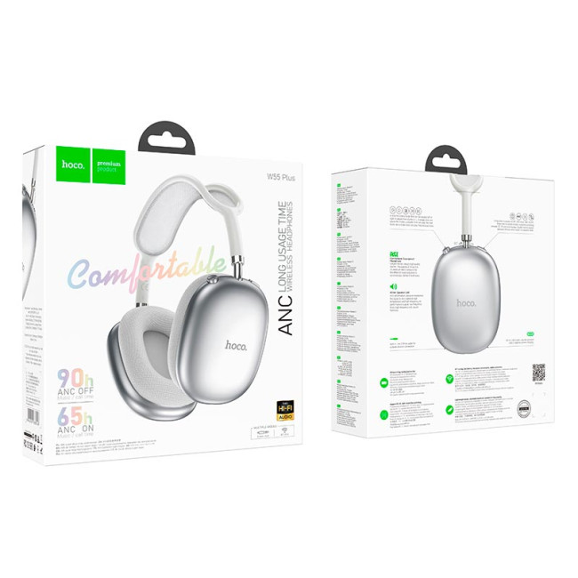 - Навушники HOCO Happiness ANC noise reduction BT headphones W55 Plus |BT5.4, 65-90h, AUX/TF|