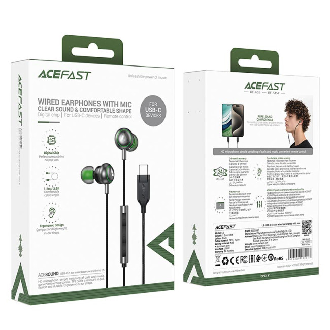 Навушники ACEFAST USB-C in-ear wired earphones with mic L5 |DSP| - чистий звук та стабільне з’єднання