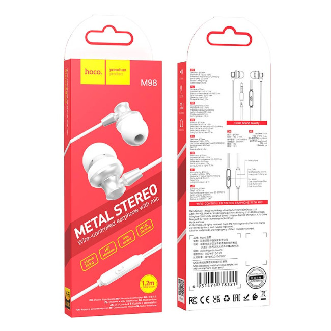 Навушники HOCO Delighted METAL universal earphones with microphone M98