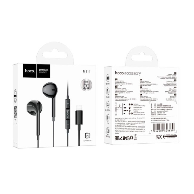Навушники HOCO Primero Digital Headset Lightning M111 - це високоякісний аксесуар для користувачів пристроїв з Lightning-виходом. Вони поєднують у собі стильний дизайн, зручність використання та відмінну якість звуку. Ці навушники ідеально підходять для прослуховування музики, перегляду відео та здійснення дзвінків.