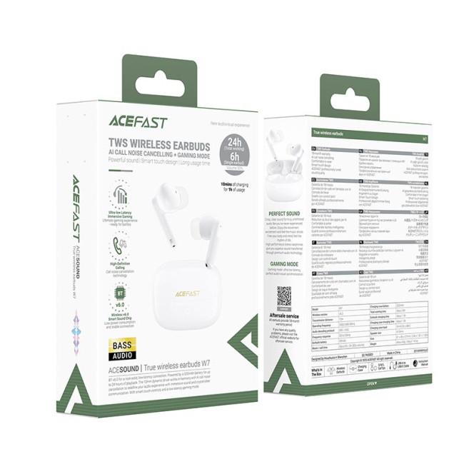 Навушники ACEFAST true wireless earbuds W7 IPX4 |BT6.0, 6/24h, 35/320mAh| - стабільний звук та швидка зарядка