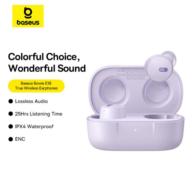 - Навушники Baseus Bowie True Wireless Earphones E18 |BT5.3, 40/300mAh, IPX4, 2ENC Mic, 7.5h|