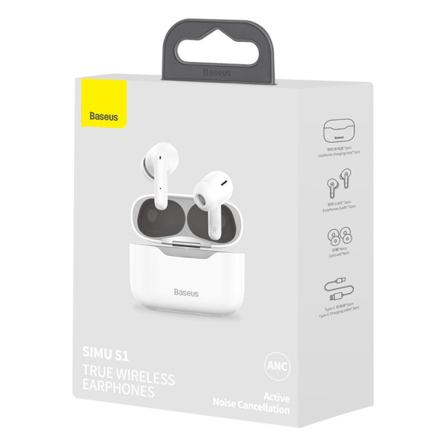 Навушники Bluetooth BASEUS SIMU ANC True Wireless Earphone S1 |BT5.1, 40/380mAh, 4.5/24Hours| (NGS1-02)