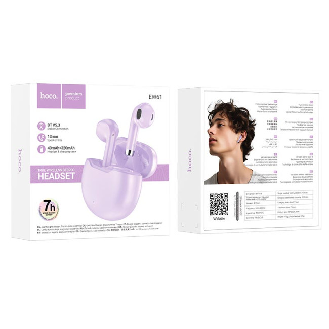 HOCO June EW61 - це сучасні бездротові навушники, що об'єднують в собі стиль, комфорт і приємне звучання.