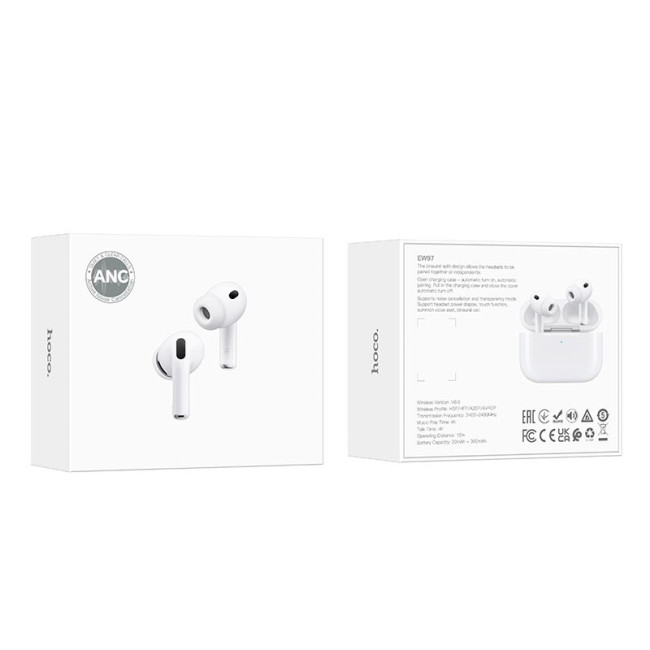 HOCO EW97 - це TWS-навушники з активним шумозаглушенням (ANC) та підтримкою прозорого режиму, що забезпечують якісний звук і комфортне користування протягом дня. Оснащені Bluetooth 6.0 та сучасним чипом JL AC7103 для стабільного з’єднання і низької затримки.