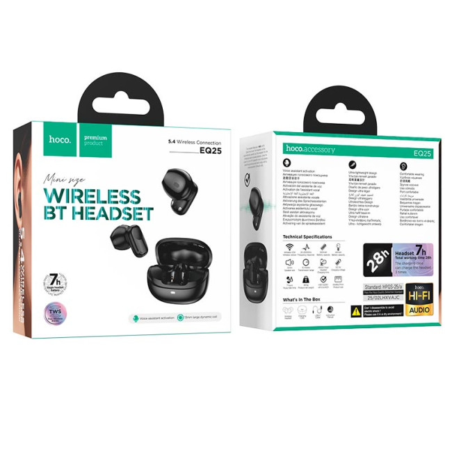 HOCO EQ25 - чудовий вибір у середньому ціновому сегменті TWS-навушників. Великий час автономної роботи, функціональність та простота використання роблять цю модель привабливою як для щоденного користування, так і як подарунок.
