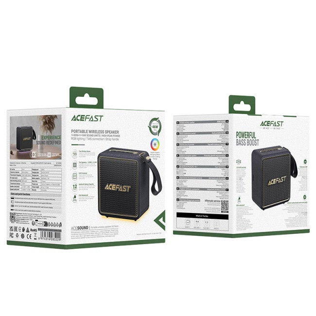 Акустика ACEFAST portable wireless speaker K3 Nano IPX6 |BT5.4, USB/TF/AUX, TWS, 46W, 12h, DSP|
