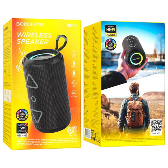 Borofone BR37 - чудове рішення для магазинів електроніки, подарунків чи товарів для активного відпочинку. Її універсальність, сучасний вигляд, LED-підсвітка та можливість стереопідключення роблять її популярною серед молоді та активних користувачів.