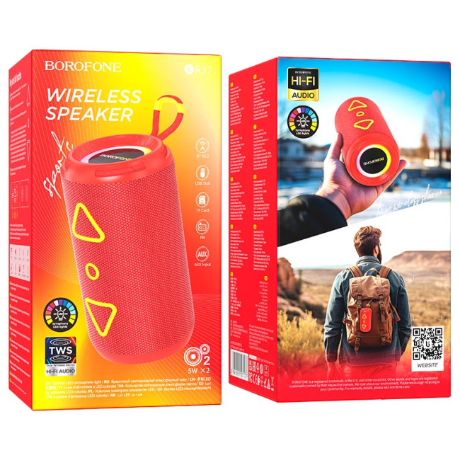 - Акустика Borofone Noble sports BT speaker BR37 |BT5.3, USB/TF/FM/AUX, TWS, 5Wx2, 2h|