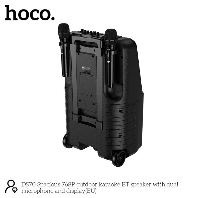 Акустика-караоке HOCO Spacious outdoor karaoke BT speaker with dual microphone and 768p display DS70 | BT5.0, USB / AUX / TF, 60W, 2-3h, EQ |