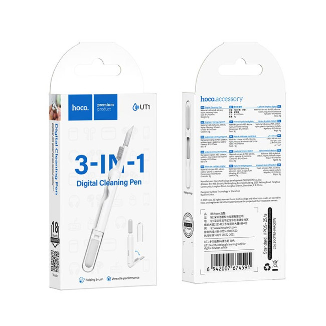 HOCO UT1 — це універсальна щітка для очищення електронних пристроїв, яка дозволяє швидко та ефективно видаляти пил і забруднення з навушників, клавіатур, мишок, смартфонів та інших гаджетів. Завдяки продуманій конструкції та різним типам насадок інструмент забезпечує якісне очищення навіть у важкодоступних місцях.