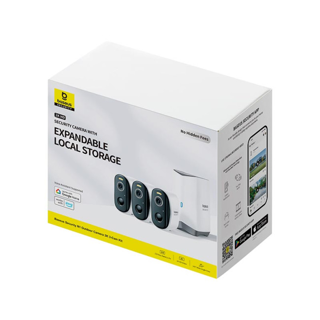 - Камера відеоспостереження Baseus Security N1 Outdoor Camera 2k 3-Cam Kit |145°, 16Gb eMMC (16TB Max), Color Night vision, IP67|
