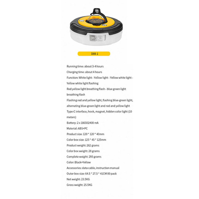 Кемпінгова лампа C LED стрічкою 10м D88-1 |Type-C, 5h|