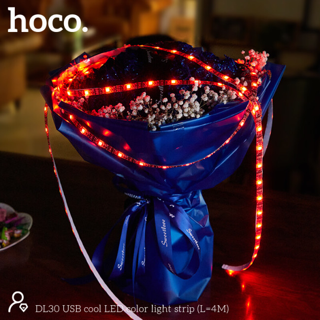 Стрічка на світлодіодах RGB HOCO USB cool LED color light strip DL30 |4M, 20RGB Mode, Remote|