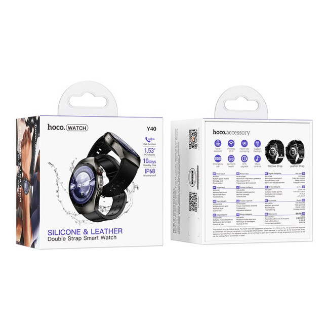 HOCO Y40 - це сучасний смарт-годинник із підтримкою дзвінків, захистом IP68 та оновленням OTA. Модель оснащена яскравим 1.53" дисплеєм, потужним процесором і розширеним функціоналом для щоденного використання, спорту та контролю здоров’я.