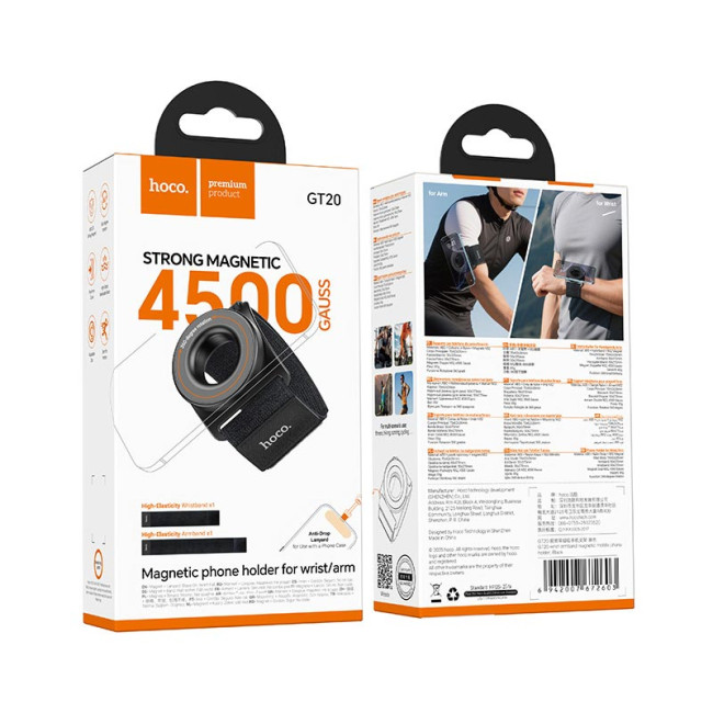 HOCO GT20 - це магнітний тримач для смартфона на руку, призначений для занять спортом, пробіжок або активного відпочинку. Завдяки міцному корпусу та еластичному нейлоновому ремінцю пристрій забезпечує надійну фіксацію телефону і комфорт під час руху.