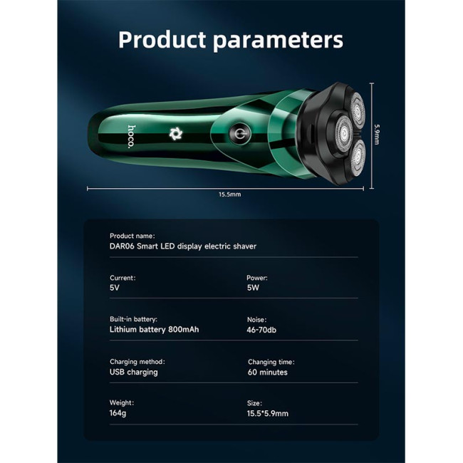 Роторна електробритва Hoco DAR06 Plus ефективно видаляє щетину без жодних подразнень. Ця модель ідеально підходить для повсякденного гоління.
