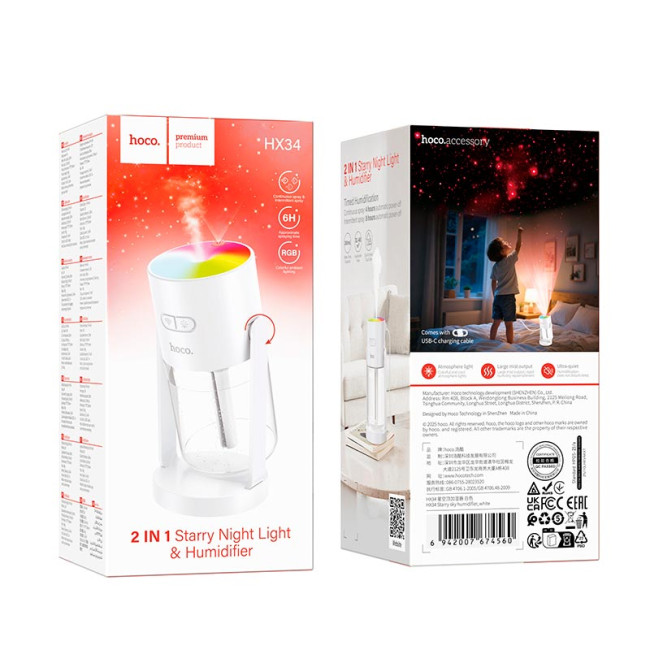 Зволожувач повітря HOCO Starry sky humidifier HX34 |RGB, 6h, 280ML|
