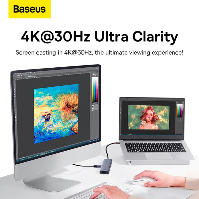 Hub адаптер Baseus UltraJoy Series 5-Port HUB Docking Station |Type-C to HDMI4K@30Hz*1+USB 3.0*4|