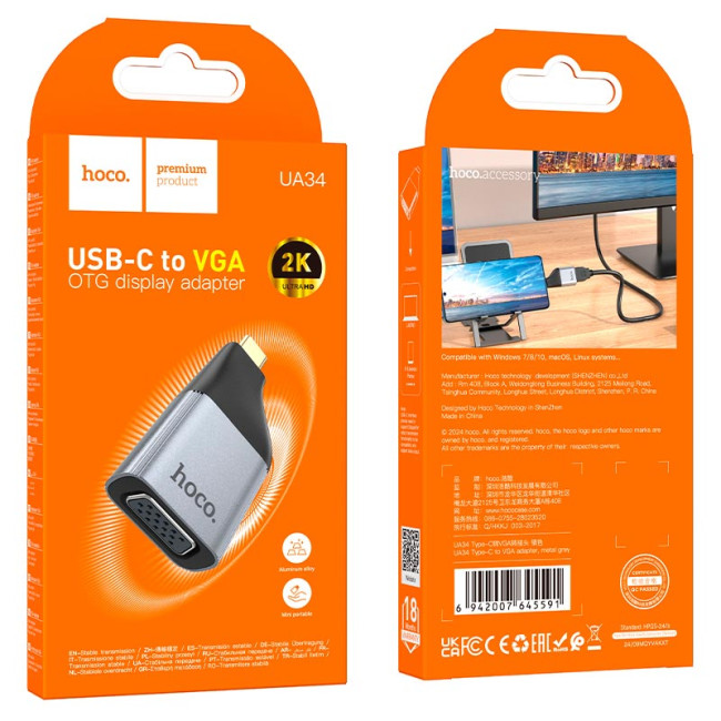 Опис продукту: Адаптер Hoco Type-C to VGA дозволяє легко підключити пристрої з портом Type-C до моніторів, проекторів та інших пристроїв з входом VGA. Підтримує роздільну здатність до 2K з частотою оновлення 60Hz, що робить його ідеальним для використання в офісах, навчальних закладах і для презентацій.