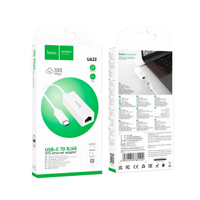 Перехідник HOCOAcquire Type-C ethernet adapter (100 Mbps) UA22