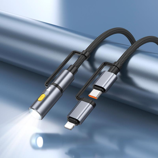 Універсальний кабель Hoco U138 All-in-one (1.2м, PD27/60W) — заряджай, передавай, підсвічуй!