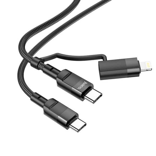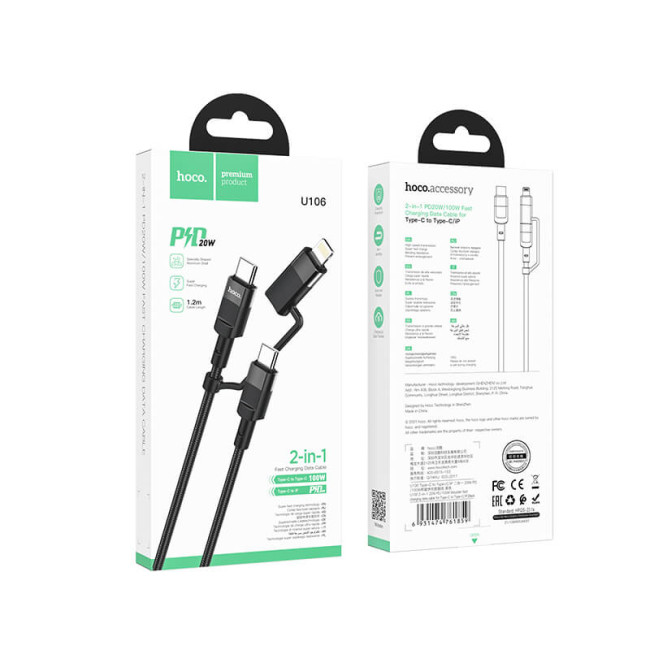 - Кабель Hoco Combo 2 in 1 Type-C to Type-C / Lightning Moulder fast charging data cable U106 |1.2m, 5A/100W, PD 20W|