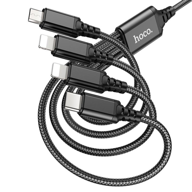 - Кабель Hoco Combo 4-in-1 2lightning + Type-C + Micro USB Super charging cable X76 |1M, 2A|