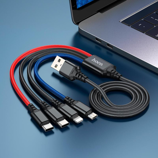 - Кабель Hoco Combo 4-in-1 2type-C+Lightning + Micro USB Super charging cable X76 |1M, 2A|