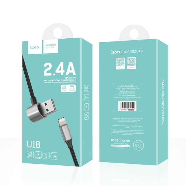 Кабель Hoco combo Lightning + Micro U18