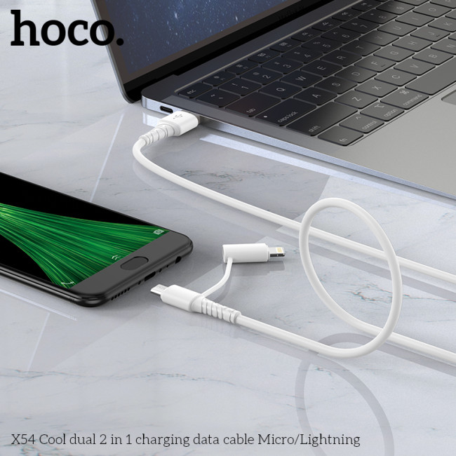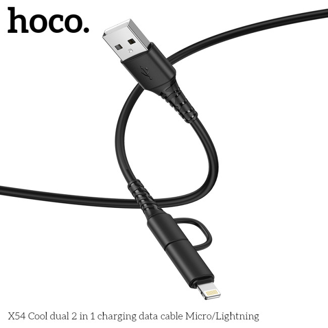 - Кабель Hoco Combo Micro USB / Lightning Cool dual 2 in 1 charging data cable X54 |1M, 2.4A|
